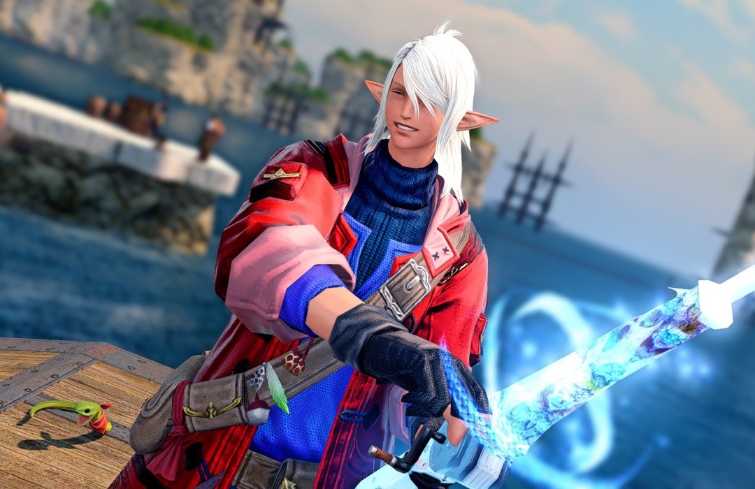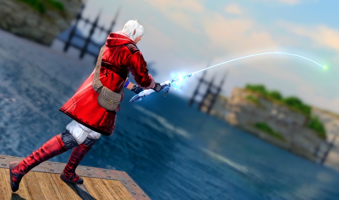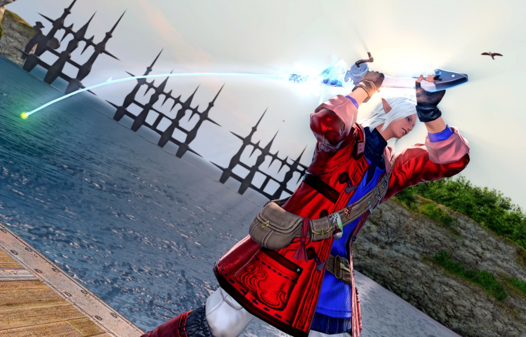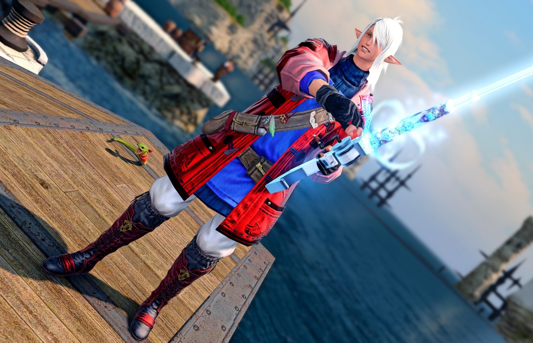 Amonās been enjoying fishing so much lately that I decided to put together a new fishing glam dyed in Allagan reds and blues! Cadu approves!
