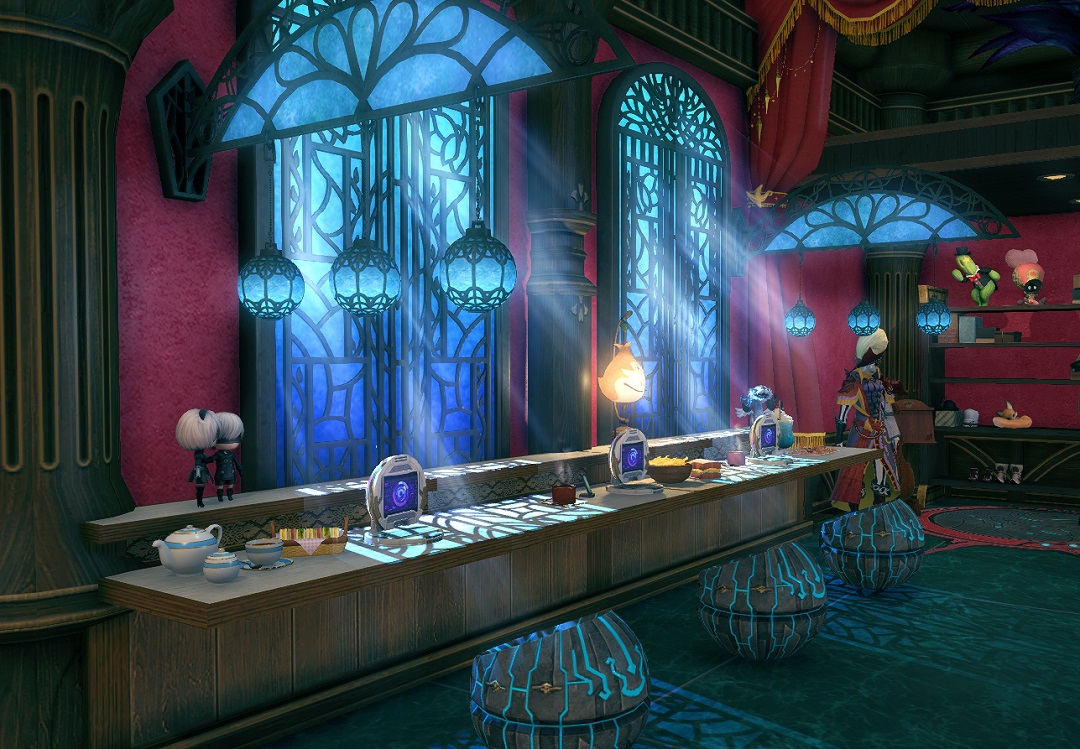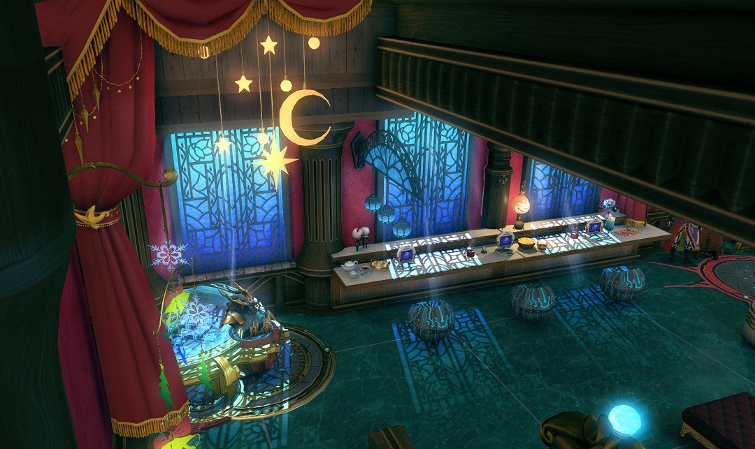 I’m pleased to announce that Tea and Tomes is decorated for Starlight and now open to the public! If you need a place to rest after Starlight shopping, we’ve got you covered!