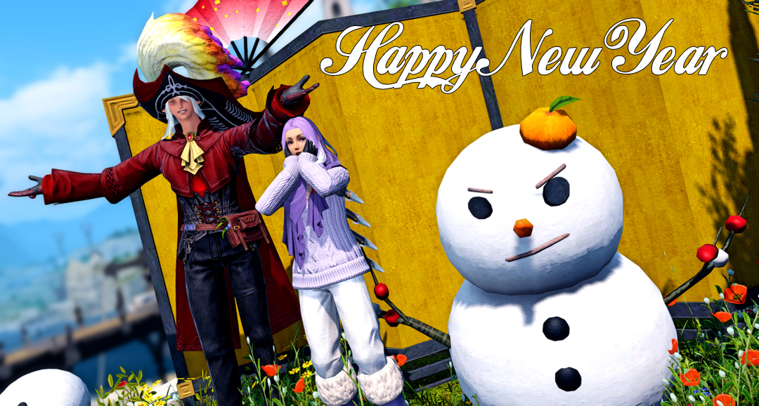 Amon and Scylla (and Smirky Snowperson) send best vibes for a great New Year!